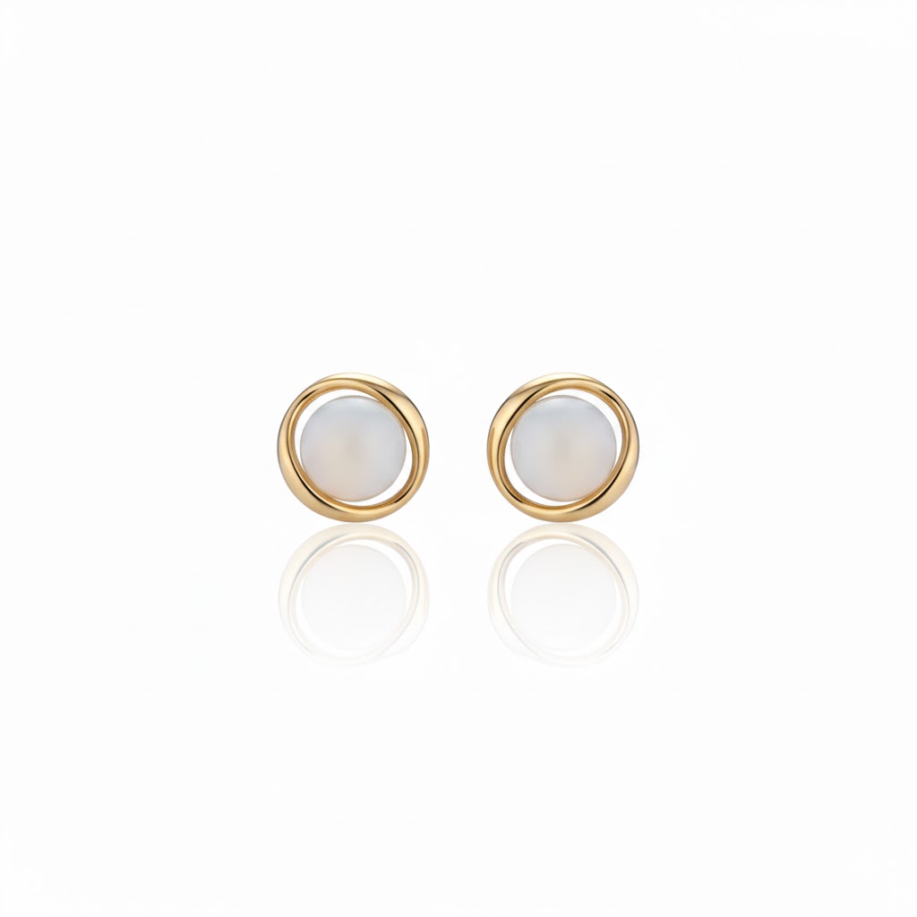 パールをゴールドサークルで包んだ上品なスタッドピアス。