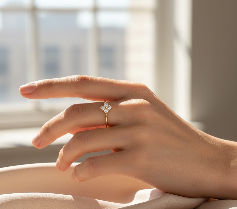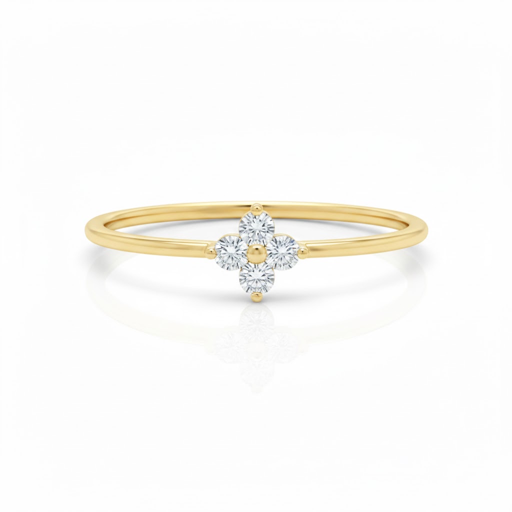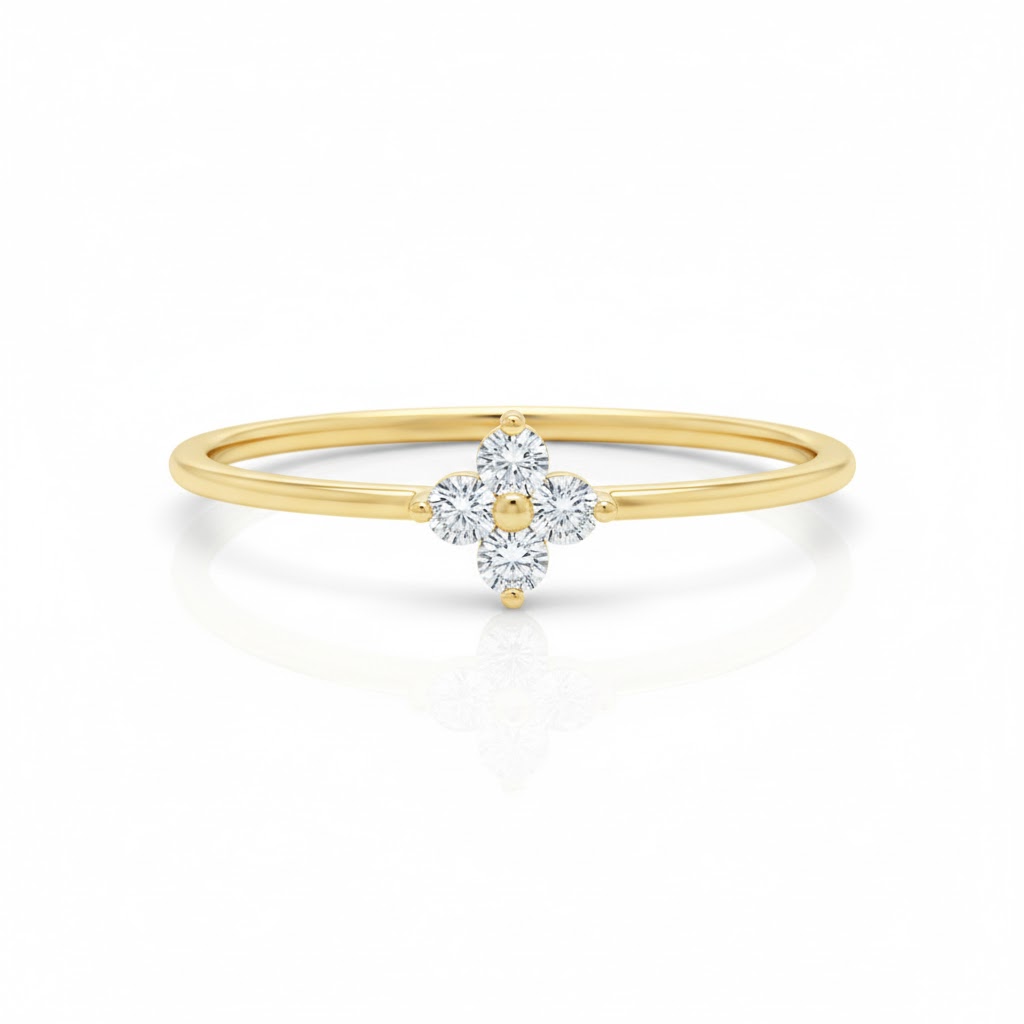 4石のダイヤが可憐に輝く、K18YGフラワーリング。