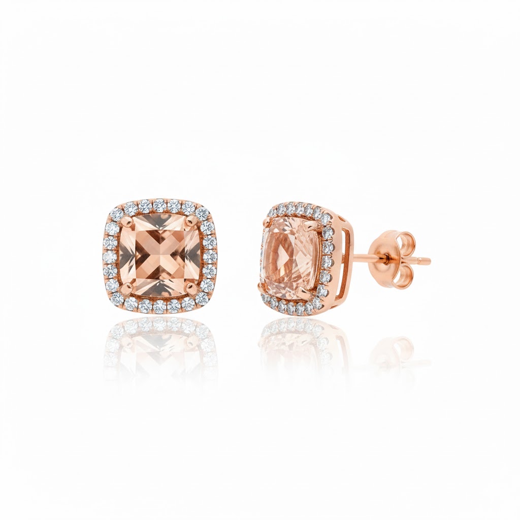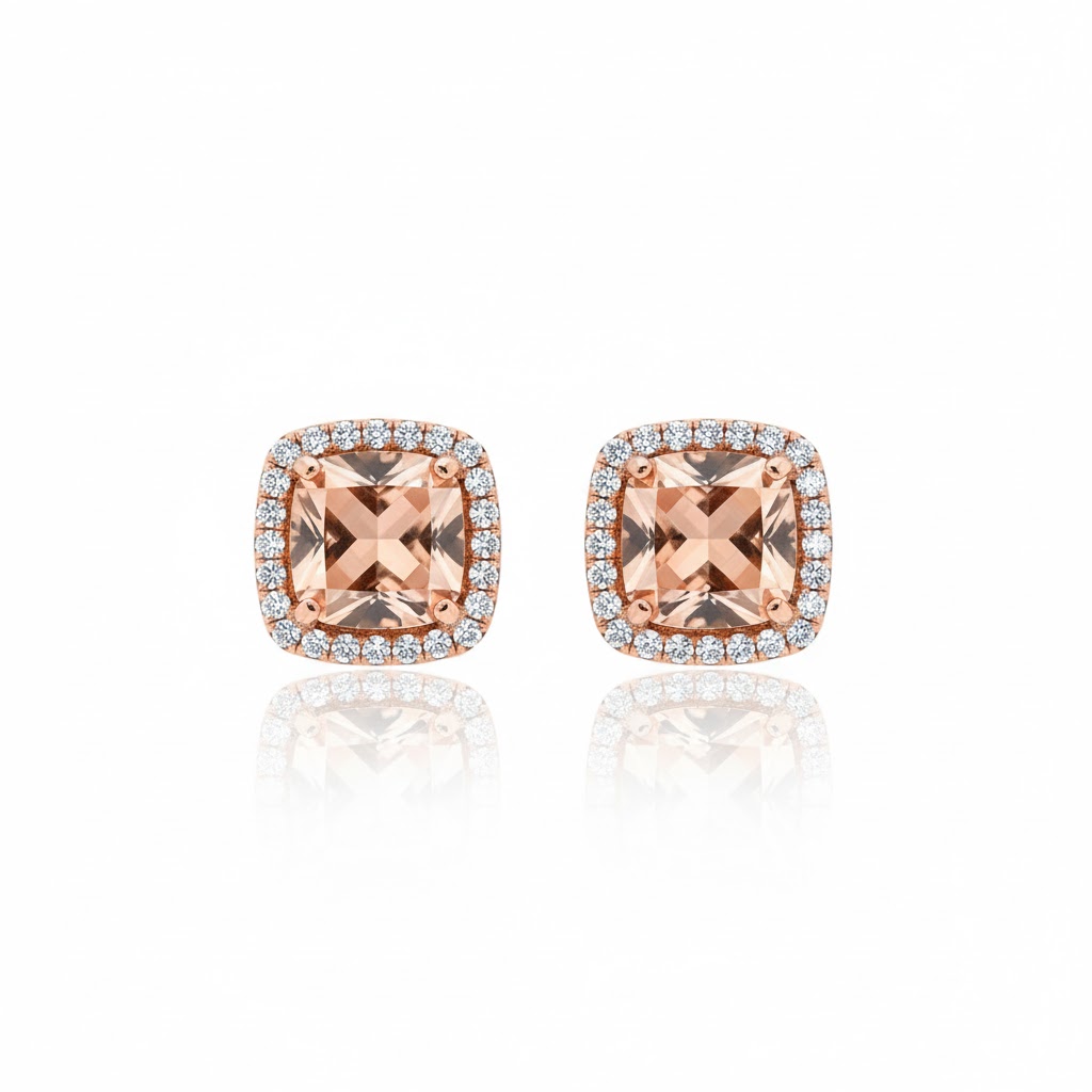 優しいピーチカラーの天然モルガナイトを中心に据え、周囲を高品質ダイヤモンドで取り巻いたクラシックなハローデザイン。